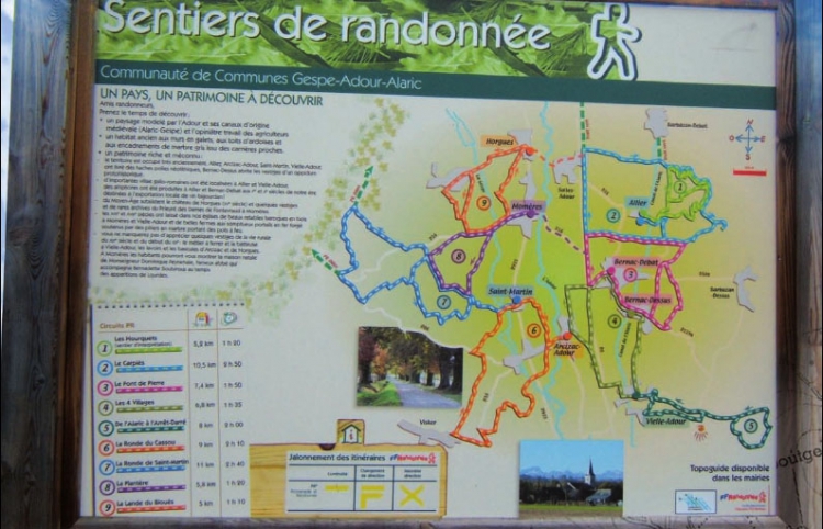 Le guide des Radonnées sur la Communauté de Communes Gespe Adour Alaric version 2011 est disponible en mairie, et consultable en suivant le lien:
